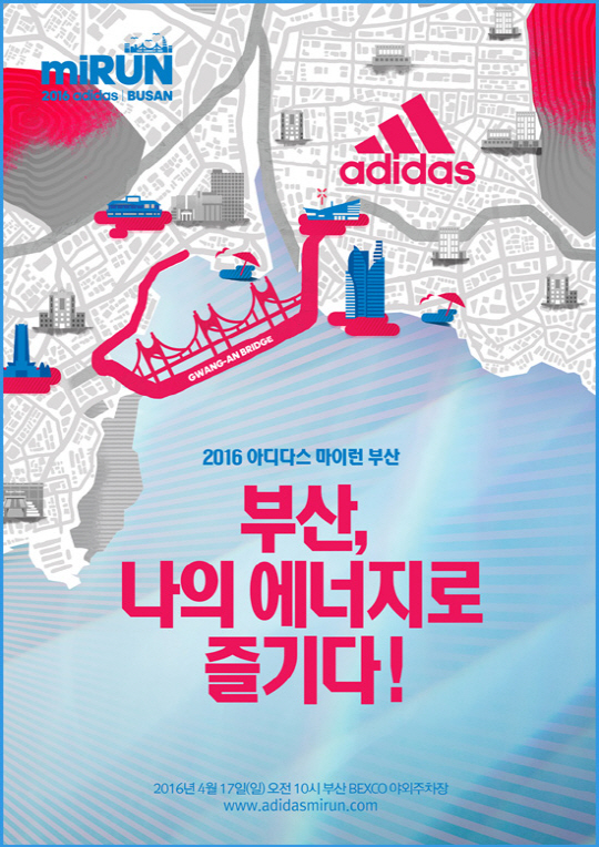 '2016 아디다스 마이런 부산' 마라톤 대회에 대한 자세한 내용은 대회 공식 홈페이지(www.adidasmirun.com) 및 페이스북(facebook.com/adidasrunningkr/)을 통해 확인 할 수 있다. <스포츠조선닷컴>