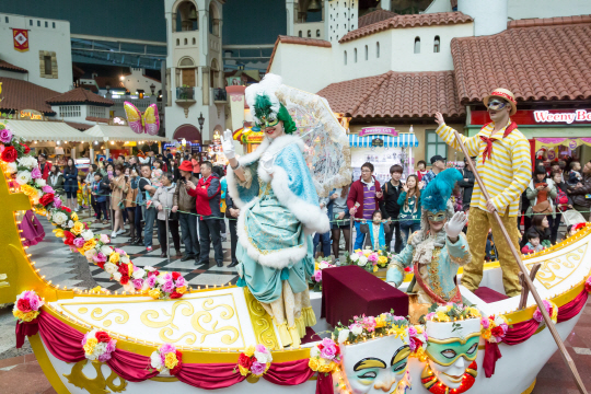 익살스러운 가면을 쓰고 실제 베니스에서 볼 법한 곤돌라와 화려한 마차를 탄 귀족 행렬은 물론 얼룩말, 사자 등 동물들을 형상화한 사파리 가면 행렬, 동화 속 캐릭터들이 함께 어우러져 화려한 봄의 시작을 알린다.