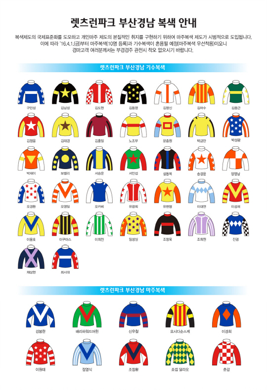 렛츠런파크 부산경남(본부장 고중환)이 복색제도의 국제표준화를 위해 4월 1일부터 마주복색제도를 시범적으로 운영한다.