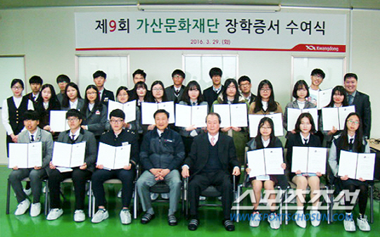 가산문화재단은 지난 29일 광동제약 평택공장에서 '제9회 가산문화재단 장학증서 수여식'을 열고 고등학생 65명에게 9700여만원의 장학금을 전달했다고 밝혔다.