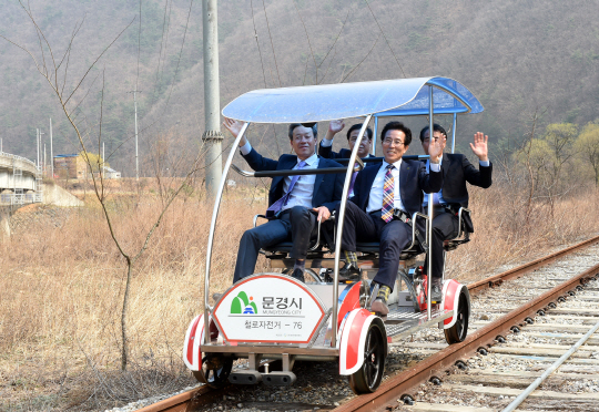 국내 최초로 '철로자전거' 운영한 문경시, 진남역 복선화로 재개장