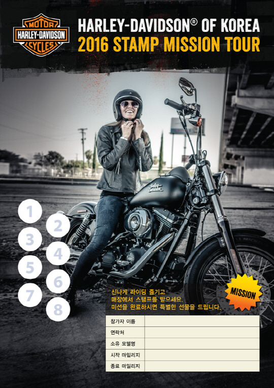 스탬프 투어와 관련한 자세한 사항은 할리데이비슨 코리아 홈페이지(www.harley-korea.com)에서 확인하면 된다.