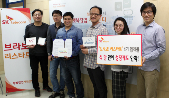 SK텔레콤의 창업 지원 프로그램인 '브라보! 리스타트' 참가업체들이 참가 석 달 만에 실질적인 성과를 거둔 것으로 나타났다. 3일 SK텔레콤에 따르면 이전 기수들의 경우 프로그램 참가 중엔 주로 투자유치 실적을 거뒀던 것과는 달리 지난 1월 말 선정한 '브라보! 리스타트' 4기 업체 12곳 가운데 3곳이 솔루션 판매, 공급계약 체결 등의 실질 성과를 거두며 올해만 80억원 규모의 매출을 올릴 전망이다.