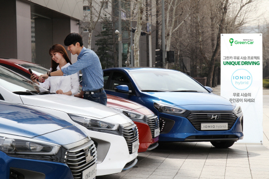 롯데렌터카의 카셰어링브랜드 그린카가 현대자동차 '아이오닉 하이브리드' 무료 시승 프로젝트를 진행한다.