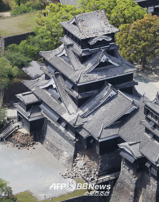 이 밖에도 구마모토성 담장 곳곳이 무너진 것으로 나타났지만 다행히 부상자는 없는 것으로 전해졌다.