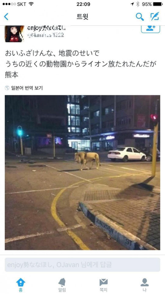 한국인을 향한 민족 혐오적 선동 트위터도 잇따랐다. "우물 물을 마시지 마라. 한국인이 독을 풀 수도 있다", "조선인이 폭동을 일으킬 것" 등의 내용이 퍼져나간 것. 버즈피드 재팬은 "민족 차별을 부추기는 헤이트 스피치다. 피해 지역에 혼란을 가중시킬 우려가 있다"라고 우려했다. 산케이신문은 "1923년 관동대지진 당시의 에피소드를 흉내낸 것 같다"라고 비판했다.