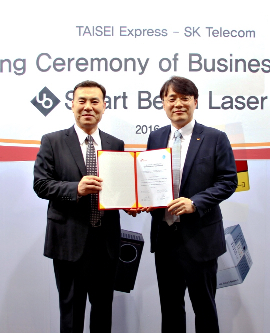 SK텔레콤이 16일 홍콩전자박람회에서 일본 유통 전문 기업인 타이세이 익스프레스(Taisei Express)사와 UO스마트빔레이저 3억엔 수출 계약을 체결했다고 17일 밝혔다.