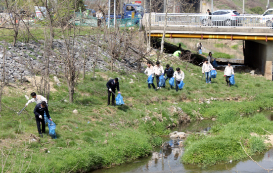 쌍용차가 깨끗한 지역사회를 만들고 사회공헌 활동에 앞장서기 위해 1사 1하천 가꾸기 운동을 실시했다.