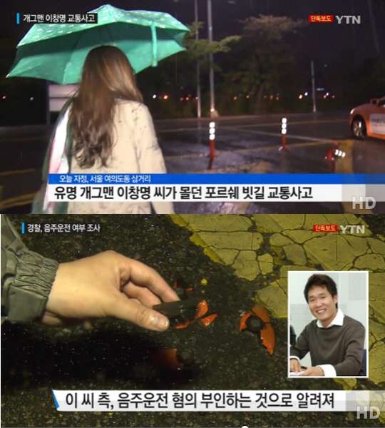 21일 YTN은 "자정 무렵 서울 여의도동 삼거리에서 이창명이 모는 1억원을 호가하는 수입차 포르쉐가 신호등을 들이받았다. 이창명은 사고 직후 차를 남겨둔 채 사고 현장을 떠났다. 이창명의 포르쉐는 앞범퍼가 떨어지고, 보닛이 열려 엔진이 드러나는 등 심하게 파손된 상태다.