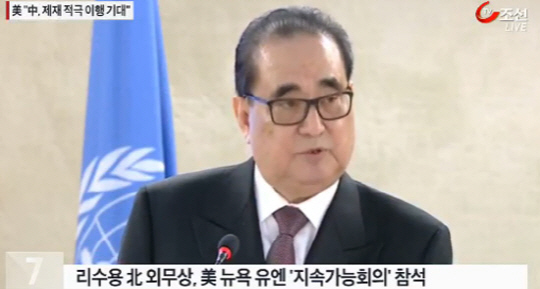 리 외무상은 21일(현지시간) 미국 뉴욕 유엔본부에서 열린 '2030 지속가능 개발목표(SDG) 고위급회의'에서 회원국 대표 연설을 통해 북한에 가해지는 국제사회의 제재를 비판했다.