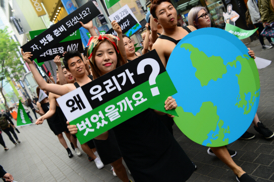 영국 핸드메이드 코스메틱 브랜드 러쉬(LUSH)가 최근 포장쓰레기로부터 환경을 보호하기 위한 '고 네이키드(Go Naked)' 캠페인의 일환으로 진행된 퍼레이드를 펼쳤다.