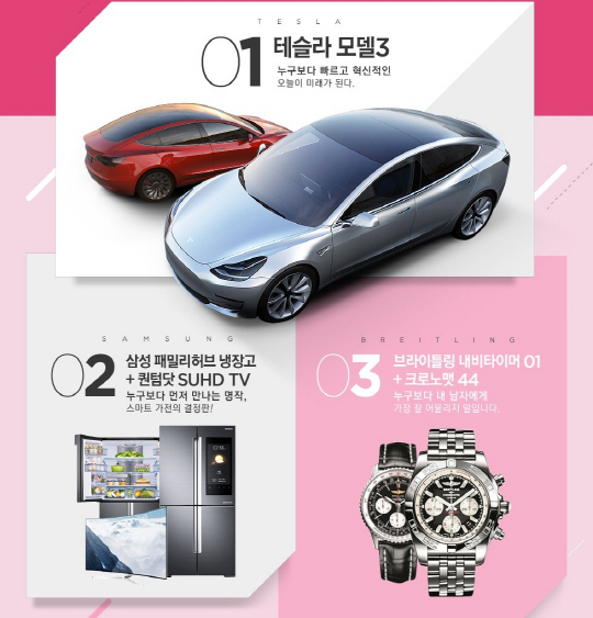 1주차(4/25~5/4)인 '상상도 못한 소원' 행사 기간에는 사전예약 돌풍을 일으키고 있는 미국 전기차 브랜드 '테슬라'의 2018년형 전기차 '모델3', 삼성전자의 풍부한 색재현력을 갖춘 최신 퀀텀닷 기술이 적용된 'SUHD TV', 세계 최초로 냉장고에 IoT 기능을 탑재한 삼성전자의 '패밀리 허브' 냉장고, 스위스 명품 브랜드 '브라이틀링의 남성시계 2종'을 총 3명에게 증정한다. 2주차(5/5~15)인 '낭만적인 소원' 기간에는 어린이날, 어버이날을 맞아 가족 단위 여행객을 위한 여행상품을 경품으로 제공하고, 마지막 3주차(5/16~25) '힐링을 위한 소원' 기간에는 최고급 휴양지 숙박권 등 힐링 상품을 경품으로 선보일 예정이다.