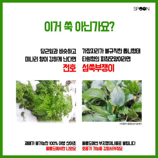 그래서 준비 했습니다. '헷갈리기 쉬운 봄나물 구별법'으로 몸에 좋은 봄나물 만끽해보는 건 어떨까요.