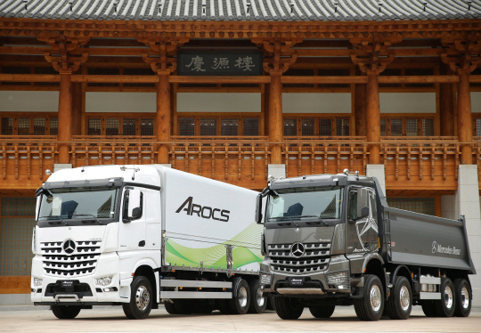 수입 상용차 브랜드 다임러 트럭 코리아가 특장성을 강화한 '뉴 아록스 6x4 카고 트럭'을 선보였다.