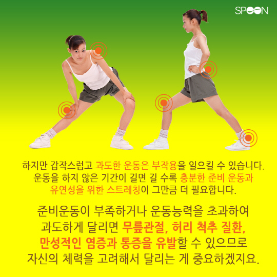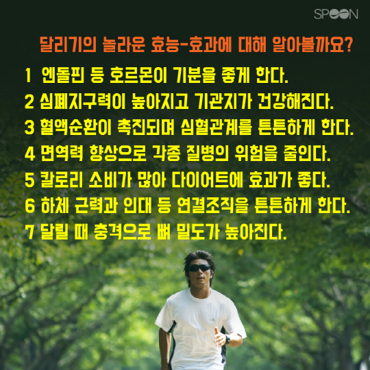 얼마전 한 건강관련 다큐멘터리에서 '신이 내린 운동' 이라며 극찬한 건강법이 있습니다. 바로 달리기 입니다. 이 방송은 달리기를 심폐지구력과 기초대사량 증진은 물론 우울증 예방효과까지 입증된 건강 유지법이라고 소개했습니다. 아쉽지만 통계청에서는 걷기나 산책을 하는 인구가 16%인 반면 달리기 인구는 0.3%에 불과하다는 조사결과를 내놓기도 했는데요, 초록이 물들어 달리기 좋은 계절, 남녀노소 누구나 때와 장소를 가리지 않고 할 수 있는 운동인 달리기의 효능과 효과에 대해 알아보았습니다. 김변호 기자 bhkim@sportschosun.com