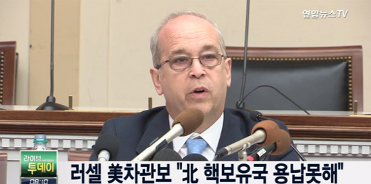 러셀 차관보는 3일(현지시간) 미 워싱턴D.C.에서 전략국제문제연구소(CSIS)와 중앙일보 공동 주최로 열린 '한반도의 새로운 패러다임' 심포지엄에서 "우리는 최우선으로 한반도 비핵화를 통해 미국과 동맹을 보호할 것이다"며 "절대로 북한을 핵보유국으로 받아들이지 않을 것"이라고 말했다.