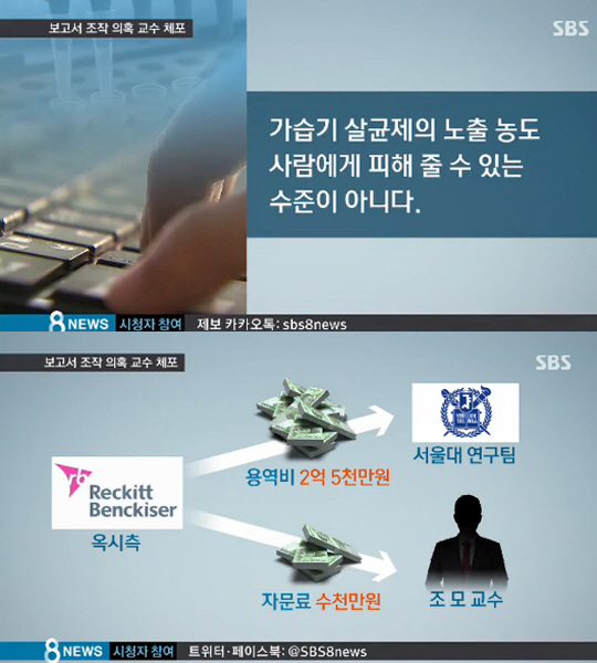 SBS는 4일 "옥시 맞춤형 실험 의혹을 받고 있는 서울대 교수가 긴급 체포됐다"라고 보도했다.