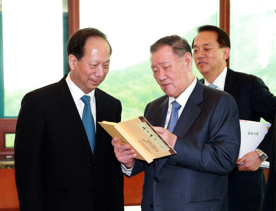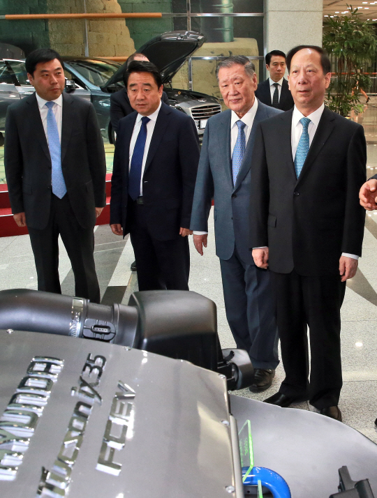 현대차그룹 정몽구 회장이 9일 오전 양재동 사옥에서 중국 스타이펑 장쑤성 성장을 만나 자동차산업에 대한 의견을 교환했다.