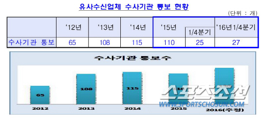 금감원은 이들 업체들의 투자유치 수법이 다양하고 갈수록 신종 수법을 동원하고 있어 단속에 어려움이 있다고 전했다.