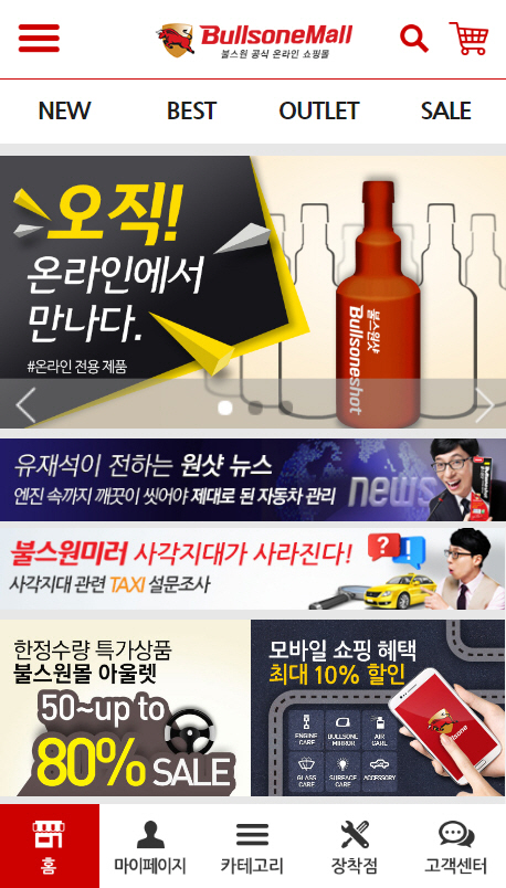 한편, 불스원몰 모바일 어플리케이션은 애플스토어 및 구글스토어에서 다운로드 받을 수 있으며, 모바일 인터넷을 통해 m.bullsonemall.com로도 접속할 수 있다.