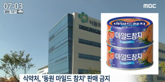 식품의약품안전처가 동원 마일드참치 유통 판매를 금지시켰다.
