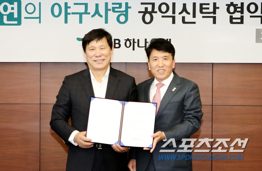 KEB하나은행은 지난 16일 한국야구위원회(KBO) 야구발전위원장인 허구연씨와 함께 '허구연의 야구사랑 공익신탁' 협약식을 가졌다고 17일 밝혔다.