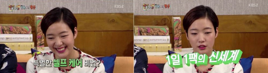 지난 19일 밤 방송된 KBS 2TV '해피투게더3'에서 배우 김고은이 피부 비결을 공개해 화제다. 등장부터 김고은의 깨끗한 피부를 본 많은 출연진들은 연신 그녀의 피부에 감탄하며 피부 관리법에 대해 질문을 했다.