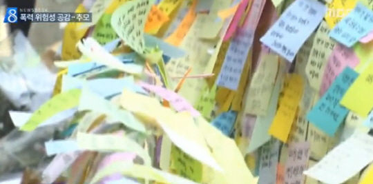 부산에서는 주디스태화택화점 인근 하트 모양의 조형물에 추모 쪽지가 꾸준히 붙여졌다.