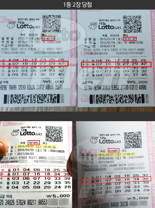지난 696회차에서는 경남 김해시의 한 판매업소에서 5명이, 694회차에서는 경기 김포시의 한 복권방에서 6명이 대거 2등의 행운을 안았다.