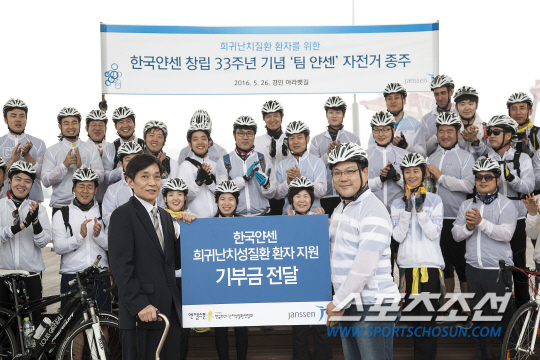 ㈜한국얀센(대표이사 김옥연)이 창립 33주년을 맞아 26일 경인 아라뱃길에서 희귀 난치질환 환자를 위한 임직원들의 자전거 종주를 진행했다고 밝혔다.