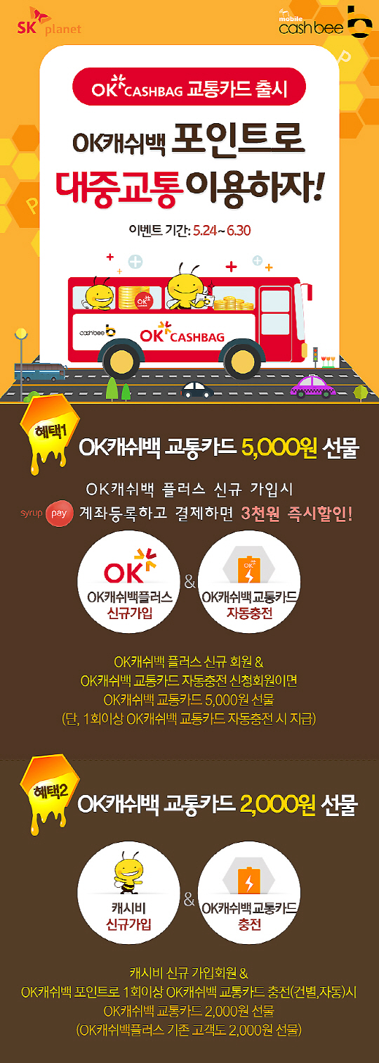 포인트 마일리지 서비스 OK캐쉬백이 캐시비 교통카드 충전 서비스를 제공한다.