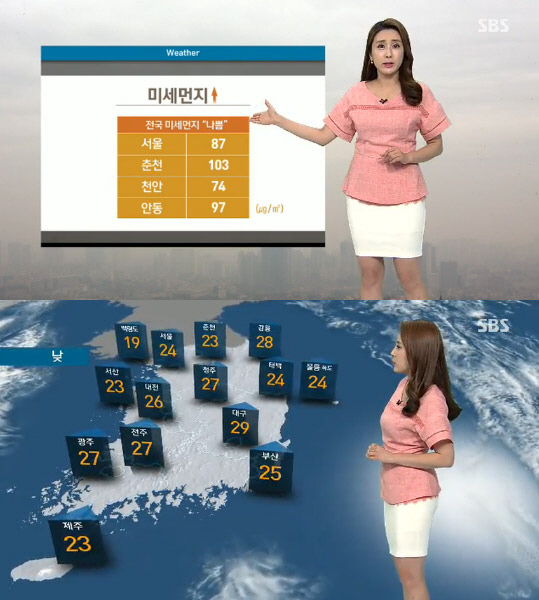 구름이 덮여 날씨가 흐려지면서 낮 기온은 어제보다 낮은 서울 24도, 광주 27도, 대구 29도로 예년 이맘때 날씨가 예상된다.