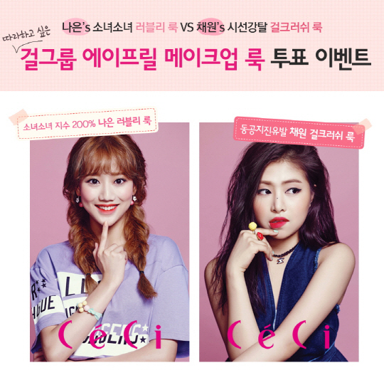 앙큼한 파피걸 메이크업 브랜드 페리페라(peripera)도 대세 걸그룹 '에이프릴'과 함께하는 메이크업 룩 투표 이벤트를 진행한다.