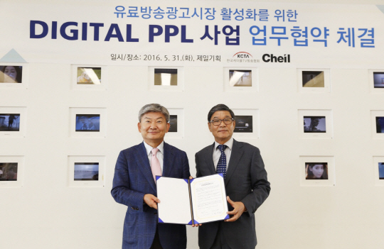 한국케이블TV방송협회가 31일 제일기획과 '유료방송 광고시장 활성화를 위한 디지털 PPL 사업' 공동 추진을 위한 업무협약을 체결했다. 양측은 업무협약을 통해 디지털 PPL 활성화 공동캠페인, 디지털 PPL 프로그램의 글로벌 유통 기반 구축, 방송 프로그램 제작 및 방송광고 활성화 기반조성 등을 위해 협력키로 했다. 제일기획은 지난해 글로벌 디지털 광고회사 미리애드(Mirriad)와 파트너십 계약을 체결, 국내 생산 동영상 콘텐츠에 대한 '디지털 PPL 솔루션' 독점 사용권을 확보한 바 있다.