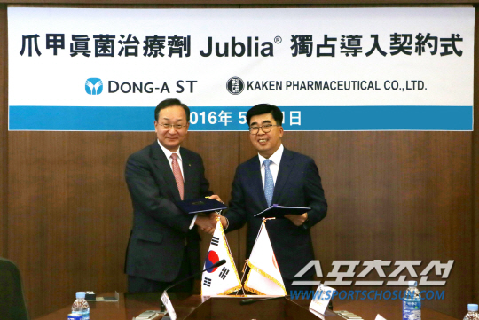 동아에스티는 31일 일본 카켄제약과 바르는 손발톱무좀치료제 신약 '주블리아'의 국내 판권 계약을 체결했다고 밝혔다.
