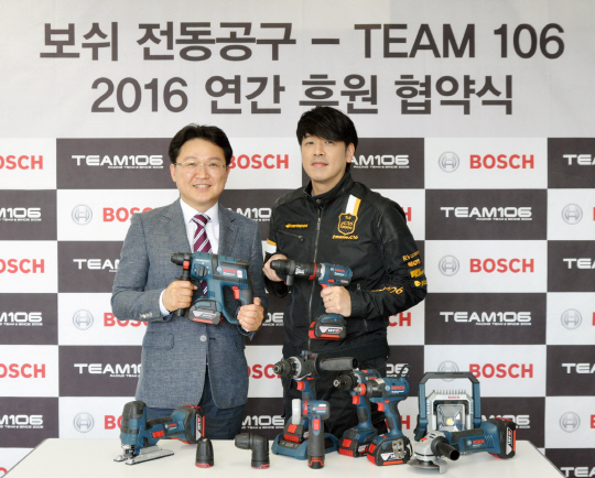 이날 류시원 '팀 106' 감독은 "모터스포츠는 첨단 기술과 스피드, 파워가 공존하는 매력적인 스포츠로, 자동차 산업의 발전뿐 아니라 축제 문화도 이끌어가고 있다"며 "전동공구 분야의 명품 기업인 보쉬 제품을 지원받아 이번 2016 슈퍼레이스 챔피언 등극 노릴 것"이라 밝혔다.