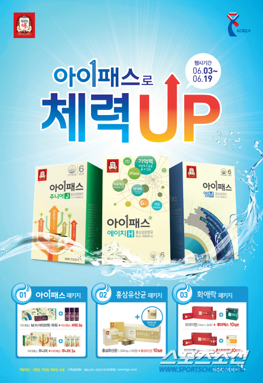 3일부터 19일까지 17일간 진행되는 이번 이벤트는 무더위가 시작되는 시기 건강관리가 중요한 수험생들을 위한 '아이패스' 시리즈(M/H/타브렛/파워)와 여성 건강 전문 브랜드인 '화애락' 시리즈 구매 시 추가증정 이벤트를 진행한다. 이와 더불어 이른 무더위와 미세먼지로 인해 더욱 중요해진 면역력 관리에 좋은 '홍삼유산균' 제품 구매 시에도 10일분을 추가 증정하는 이벤트를 진행하며, 홍삼에 다양한 기능성 성분을 결합해 만든 알파 프로젝트 제품들에는 구매혜택을 제공한다. 초여름에는 건강관리와 더불어 중요한 것이 피부건강이다. 자외선 지수의 증가로 인해 손상될 수 있는 피부건강을 지킬 수 있도록 홍삼 화장품인 '동인비'의 '영쿠션비비' 1+1 행사와 '퍼펙트선크림 기획세트' 출시를 통해 몸의 건강과 피부 건강을 함께 지킬 수 있도록 준비했다.