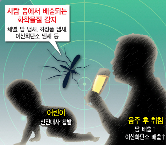 피 빤 모기 잡으려면 침대 주변 수색: 모기는 어지럽게 날지만 비행 시간은 짧다. 흡혈로 배가 무거워진 모기는 높이 날지 못하고, 벽에 붙어 쉬면서 피를 소화한다. 자신을 물고 도망간 모기를 잡으려면 침대 주변 벽이나 커튼, 가구부터 수색해보자. 의외로 쉽게 눈에 띈다. 한편, 모기는 선풍기 바람에 취약하기 때문에 선풍기를 틀어 놓고 자면 모기에 잘 물리지 않는다.