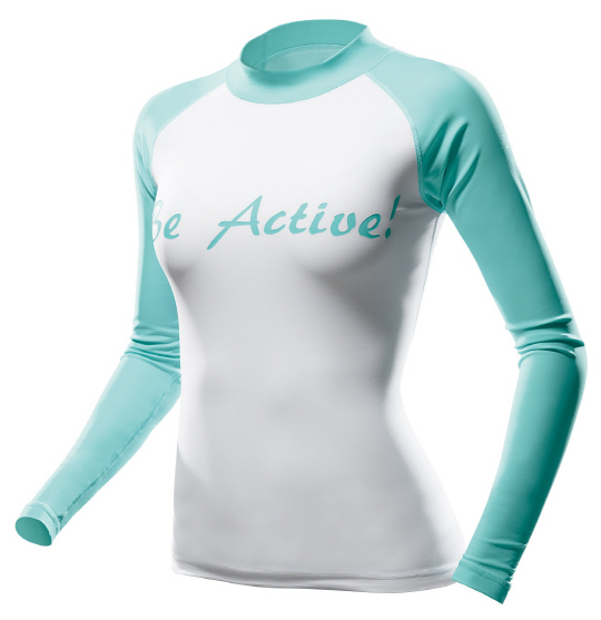 여성 대표 제품인 '액티브 래쉬가드'는 화이트 컬러의 몸판과 민트 컬러 소매부분을 배색해 청량하고 깔끔한 느낌을 주고, 타이포나염과 소매 부분 포인트 나염이 특징이다. 상의는 민트 외 화이트, 블랙 컬러의 래쉬가드를 포함한 총 3종으로 구성됐다. 이 외에도 다양하게 매치 가능한 블랙 레깅스 제품도 함께 선보였다.