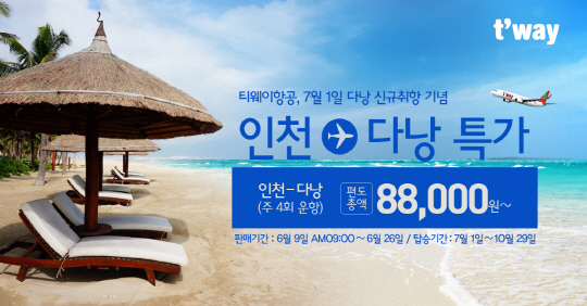 티웨이항공이 7월부터 인천-다낭 신규 노선 운항에 들어간다고 8일 밝혔다.