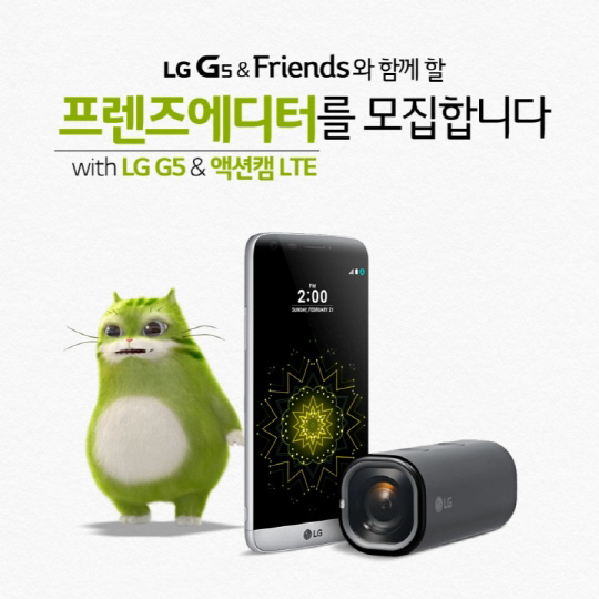 지원 희망자는 LG전자 모바일 공식 인스타그램 계정을 팔로우한 후, 모집 공고에 신청 댓글을 남기면 된다. 'G5'와 'LG 360 캠'을 제공한 지난 '프렌즈 에디터' 1기에는 2000여 건 이상 신청이 접수되는 등 뜨거운 반응을 이끌어 낸 바 있다.