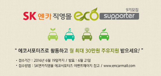 '에코서포터즈' 모집 및 차량별 실주행연비에 대한 자세한 내용은 SK엔카직영몰 홈페이지(encarmall.com)에서 확인할 수 있다.