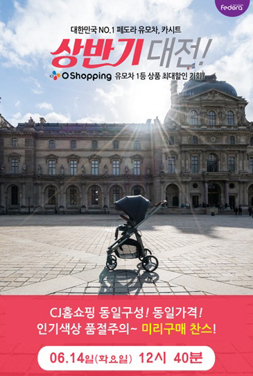 페도라 관계자는 "날씨가 따뜻해지면서 아이와 함께 편안하고 안전한 산책을 즐길 수 있는 편안하고 안전한 유모차-카시트 문의가 증가하고 있다"며 "아이의 안전은 물론 트렌디한 유모차-카시트를 합리적인 가격에 소비자에게 선보이기 위해 홈쇼핑 방송을 진행하게 됐다"고 말했다.