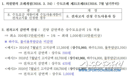 오는 7월부터 수도요금고지서를 이메일로 받으면 수도요금을 감면받을 수 있게 된다.