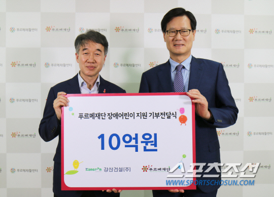 푸르메재단은 지난 14일 강산건설이 장애인의 재활과 자립을 위해 '푸르메재단 넥슨어린이재활병원'에 10억원을 기부했다고 15일 밝혔다.