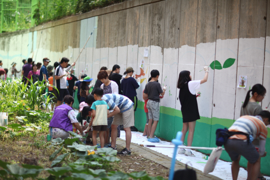 '밥 아저씨와 함께하는 희망로드'란 테마로 실시된 이번 봉사활동에서 총 52가족 150명의 참가자들은 가족단위로 맡은 구역의 벽화 채색작업을 실시하며 의미 있는 나눔활동을 펼쳤다.