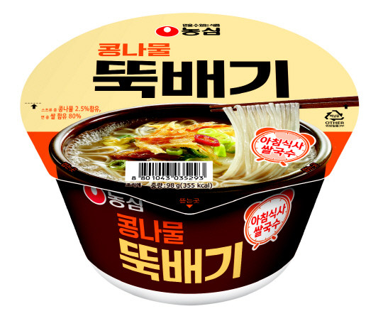 농심이 최근 선보인 콩나물뚝배기는 바쁜 아침 뜨거운 물을 붓고 5분만 기다리면 완성되는 담백하고 시원한 국물의 쌀국수다. 밥과 국에 비해 준비하는 시간이 훨씬 짧아 가벼운 아침식사로 제격이다. 농심 관계자는 "콩나물뚝배기 한 그릇이면 출근과 등교로 바쁜 아침에도 간편하게 아침식사를 해결할 수 있다"고 덧붙였다.