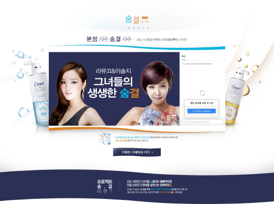 글로벌 메가 브랜드 '도브 (Dove)'가 오늘 밤 8시, 90분간 '숨결 라이브' 인터넷 생중계를 통해 소비자와 실시간 소통한다.