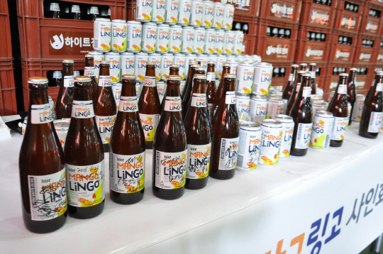 하이트진로의 주류 과일믹스 신제품인 '하이트 망고링고'(이하 망고링고)가 전주공장에서 출고됐다.