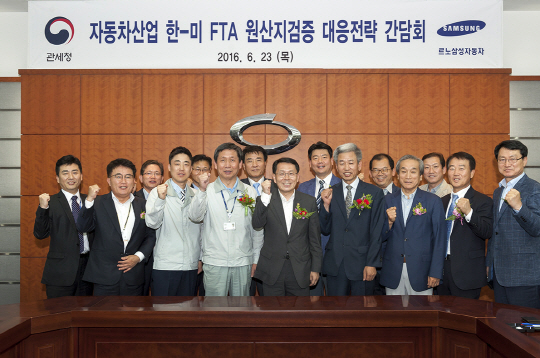 르노삼성자동차는 천홍욱 관세청장, 류원택 부산세관 통관국장 등 세관 고위관계자들과 르노삼성 협력업체 대표이사들이 함께 참석하는 '자동차산업 한-미 FTA 원산지검증 대응전략 간담회'를 23일 진행했다.